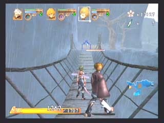 FromSoft − エヴァーグレイスII − 〜1st〜 フロムソフトウエアから発売の3DアクションRPG、エヴァーグレイスIIが発売された。 オリジナリティの有る世界観と、菅原健氏の独特な雰囲気のイラストが印象的な作品だ。 CGムービーの後直ぐにゲームエンジンでストーリーが展開するが、3D品質としてはPS2ソフトの中では中の上と言った感じでそれ程綺麗な感じではない。 それより気になったのは、せっかく気に入っていた菅原健氏のイメージイラストと実際のキャラのモデリングが違うぅ〜(T-T フィルナとかソカとかの女性キャラはイラストよりまとも(笑)になっているので良いのだが、ユテラルドとかリヤナが(T-T 全然違うぞ〜(笑) まあそれはさておき、ゲームは小マップで区切られたステージの中を斜め上方(バードビューに近い)視点でプレイする事になる。 しかし視点は随時キャラクタの正面に移動でき、視点距離も変えられるのでまあまあと言った感じ。 このゲームのオリジナルポイントは、三人がパーティーを組んで移動していると言うこと、プレーヤーは三人のうち一人を常に操っていて、他の二人は勝手に付いてきて勝手に攻撃したりする。 また攻撃方法も通常方式の他に、パルミラアクション(PA)と言われる特殊技を使えるのがポイントで、しかもこれは単体で使うより連携させて使うことに意味があるのだ。 例えばユテラルドでPAを発動し、まだ敵にPA効果が残っている間にリヤナのPA、フィルナのPAとヒットさせて行く。 こうすると普通は攻撃力が高くなるとかの効果があるのだが、このゲームの場合コンボを繋げることによりアイテム強化などに使うパルミラ片を入手できるようになるのだ。 発動するPAの種類は装備に依存し、またキャラクタ能力まで装備(アクセサリや服)で上下するというのがこのゲームの特徴だ。 普通RPGでは経験値が貯まるとキャラクタ能力が上がるのだが、このゲーム では装備の能力が上がるというシステムになっている。 まだホンの触りしかプレイしていないが、移動がまだ慣れて無いため少々引 っかかったり気味だったり、屋内では視点が固定されるので見通しが悪いとか セーブ時間がやや長いなど気になる所もすでに有るが、独特なシステムを沢山 取り入れ、気合いの感じる世界観を閉じこめたこのゲームをプレイする事をこれ から楽しみにしている。 〜2nd〜 大体ゲーム中盤を過ぎた所までプレイしたと思うが(雑誌情報から)これまでの段階で感じたことを書きたいと思う。 自分はコンシューマのRPGはあまりプレイ経験が無く、しかも3Dものというと洋ゲーFPS的RPGが主体だったのだが、このゲームは2D時代のRPGとはまったく異なるものであると言えるだろう。 RPGといって思い浮かぶのは、街や村に入って住民達から情報を貰い、装備を調えたりして次のクエストに向かったり、次から次へとモンスターを倒して経験値を上げるのがRPGだと思っていたが、前項でもあげているとおり、このゲームには村人達との会話とか主人公の経験値アップという要素は無い。 ストーリーの区切り毎に3〜4つ程度のステージが有り、ステージをクリアしてストーリーが進行するとキャンプイベントに入り、キャラクター同士が話をする感じで今までのストーリーが整理されたり、新たなクエストが生まれたりする。 主人公達のパワーアップも敵を倒すことによって経験値を得る方法ではなく、宝箱やショップで購入して得た装備(兜、鎧、具足、アクセサリー、武器)を新たに身につけることにより行われる。 またこれらの装備はパルミラ片と呼ばれる物質により各要素(攻撃力、耐属性)を強化する事ができる(店長に強化してもらう)。 パルミラ片は宝箱で入手できるし、またパルミラアクションを連鎖(コンボ)攻撃させる事により発生させる事ができる。 連鎖自体は単体攻撃と効果は変わらないと思うが、このパルミラ片を出すためだけに連鎖を行っているようなものだろう(笑)。 このゲームの特徴となる装備も多種多様で、リアル系の鎧などからネコミミ、熊の被りものなどの受け狙い系まで揃っている。 それぞれ各属性の耐性も有り、熊だと樹属性に強かったり(森の住人だから)、パラソルだと凍属性だったり(雨は冷たいから)する。 頭に水色のリボンを付けて露出度の高いコスチュームを付けたユテラルドなんか見たくもないのだが(笑)、こういう装備をするワケは店長からセンス評価をしてもらうタメなのだ。 店長にコーディネートを見せると、「うーん、いまいちネー」とか「なかなかイケてるヨ」などと評価してもらえ、良い評価を貰えると店頭の商品を割り引きしてもらえるのだ(最大25%引き)。 またショップではセーブやパルミラアクションの練習、アリーナ出場、装備強化なども行える。 実際のゲームプレイは、各ステージを入り口から出口まで行けば良いのだが、これも神殿や洞窟などの閉鎖空間から草原や山道、廃墟などの屋外まであり、それぞれに頭を使わなければ先に進めない仕掛け
