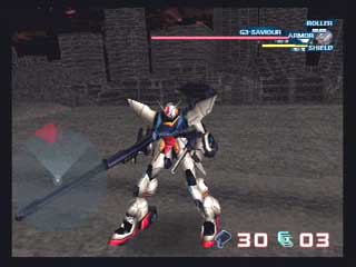− G−SAVIOUR − PS2登場初期に発売されたロボットアクションゲーム。 G-SAVIOUR(以下GS)は一応ガンダムシリーズなのだが、ガンダムファンからすれば関係のない話である(笑)。 一応サンライズが絡んでは居るが、キャラクターやストーリーなど海外色が強く、TVで本編も見たが自分は今一好きになれない作品だった(外人の俳優さんがダメダメ)。 で、このゲームには本編のダイジェストが三本も収録されているので(しかもDVD画質)、TVを見逃した!という人は見てみるのも良いと思う。 と言っても三本とも同じ内容なのだが・・・ まずゲームをスタートさせて思ったのは音楽がサンライズ英雄譚Rと同じだと言うこと。 恐らく制作が同じ所なのだろう。 関連して配属されている空母(強襲艦)のデザインも、英雄譚Rのクラウドシップ(笑)。 本当はGSの方が最初なので英雄譚Rが似ていると思うべきなのだろうが、何分英雄譚Rを先にプレイしていたもので違和感倍増という感じである(^^; 実際のプレイだが、まず操作感が今までプレイしたアクションゲームのどれとも似てないのでとまどった。 十字キーは全く使わないし、ホバー使用時と通常歩行時では横移動の方法が異なるのが困る。 また無くては個人的に困る(笑)ロックオン対象を中心にした機動も無いし、上昇(ジャンプ)という空間移動の概念もない。さらに致命的な事に平行移動がまともに出来ない! 平行移動するにはデフォルトではスティックを横に倒しながらL2を押すのだが、微妙なタイミングでただのターンになってしまう事が多く、しかも成功してもややターン方向にずれながらの移動になるので、完全な平行移動をする事は不可能なのである。 結局慣れるまではホバーを使用して敵弾回避をするしか無い。 さらにレーダー範囲の狭さとロックオン距離の短さ。 敵機はかなり前からこちらを捉えているというのに、自機はかなり近づかないとレーダーに相手を表示しないし、当然ロックオンすらしない。 高度差が有る場合、目標に手動で標準を合わせるのはかなり難しく(出来ることはできるがアバウト)、結局接近被弾覚悟で近づくしかない。 またどのステージも直線的なレイアウトでただ全長が長く、敵の配置も単調な上に、いつも最後にはボスが控えているというのも頂けない。 ステージ数が8つと少ないのもボリューム不足である。 またダイナミックな視点移動(VAS)も売りなのだが、プレイ中自機ばかり眺めている訳にはいかないので、自己満足を満たす以外役にはたたない。 プレイ中の視点も、何れも自機がじゃまであまり良いものはない。 キャラクターも今一で、特にキャップのベンが頂けない・・・ かなり“アウッチ”な感じである。 なんかアメリカのB級TVドラマ風シナリオも・・・ 悪い点ばかり上げてしまったが、良い点は英雄譚Rを彷彿とさせるBGM。これは気に入った。 後はグラフィックスもぎりぎり及第点。 全体的に難易度が低いことか。 シールドが何度も使えるのも良いと思う。 うーん・・・しかしあまり良い点が多くないな。ていうか悪い点が多いのが事実か(笑)。 アクションゲームとしてまともじゃないのはやはりダメだ。 特にガンダムを名乗っておきながらサーベル戦に意味がないのが痛い。 最後のボス戦も難易度めちゃくちゃ。 はっきり言って絶句します。滅茶苦茶です。 これ作った人の腕を疑います。 実は買う前から評判は知っていたのだが、やはりガンダムゲーはプレイせねばという事で買ったのでありました(爆)。 やはり自分でプレイしてこそクソゲーの評価も下せますからね(笑)。 |