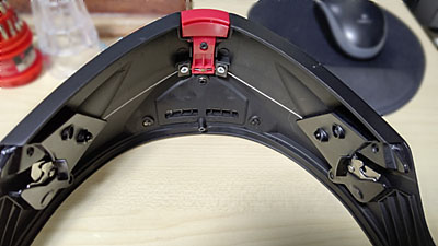 ・バイクねた 11月に入り流石に鹿児島も寒いので、ジェットヘルメットからフルフェイス(システム)ヘルメットにチェンジしました。 ![]() 今使っているフルフェイス(システム)ヘルメットはリード工業のREIZENという商品で、フルフェイススタイルながらシステム機構という事で、被るときはジェット形態になり被りやすいし停車時などはチンガードを上げて飲み物も飲めるという便利なモノ。 (フルフェイスで飲むのは至難の業) 以前使っていたOGKのテレオスIIIと異なり高度なロック機構を持つため、いつか壊れるんじゃ?と思っていたら案の定壊れました。 仕事帰り“さあ、メット被ってGo!”と思ったらチンガードがロックされて動かない! 解除ボタンを押しても右側のロックだけ動き、左側が動かない。 “えー!!これじゃメット被れないじゃん…” と思いましたが、良く考えたらフルフェイスメットとして被れば良いだけの話でした(笑) メガネの着脱が面倒ですけどね。 どうせ保証も切れているし、ダメもとで分解してみました。 ![]() 赤いロック解除ボタンを押すと、左右に伸びている金属ワイヤーがロック機構を解除する仕組み。 仕組みとしては簡単なので直せそう。 ![]() 原因は金属ワイヤーの終端にあるカシメ部分がズレて、外れかけていただけでした。 ていうかロック側の固定が適当! これじゃ、いつか外れるじゃないの!! 左右ともしっかりペンチでカシメておきました。 全部のパーツを元の様に組み込み完成。 治りました。 買いなおしたら15,000円くらいするので助かった(´Д`) | |||
