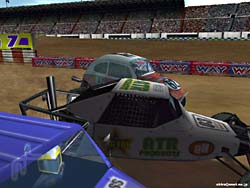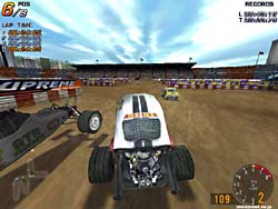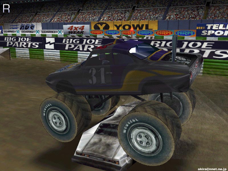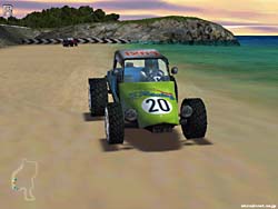 ☆ゲーム内容 このゲームはタイトルの通り、ビートルオンリーのカーレースゲームです。 しかも登場するビートル達は色物揃いです(笑)。 DEMOで選択できるゲームモードはQuickRaceのみで、レースはCROSS&ROLLとMONSTERを選択可能です。 それぞれ内容はCROSS&ROLLがモトクロスのバギー版みたいなもの、MONSTERはその名の通り巨大なタイヤを装備した車で、様々な障害物をクリアして行くというレースです。 いずれも特にDEMO特有の時間制限等は有りませんし、リプレイも有るので思う存分遊べます。 ☆オプション類 オプション類は大ざっぱですが、そこそこに備わっています。 ここで設定できるのはグラフィックス設定とサウンド設定、そしてコントロール設定です。 グラフィックスに関しては、解像度&色数の設定を別ユーティリティで行うようになっており、ゲーム中では主にグラフィックスクォリティを設定します。 後サウンドやコントロールは必要最低限かつ不便はない、という感じでしょうか。 この辺りの感じ、けっこうコンシューマ的な印象です。 ☆グラフィックス グラフィックスは、まずまずのレベルでしょうか。 周囲のオブジェクト、ロードディテール等不満のないレベルです。 というか特筆することは無いという感じですね(笑)。 ただ、下記レビューのFord Racingに比べると、随分車体の描写が適当な感じです。 ポリゴンの“骨組み”に、テクスチャーの“皮”をかぶせたような、そしてそれに一応テカリを加えた・・・といった感じでしょうか。 しかしこのゲームに関しては、その点に不満を感じません。 ゲーム内容がシビアなレースものでは有りませんし、カーカタログ的なものでもありません。 どちらかと言うと、マリオカート的(いや、違うか)なディテールの、見た目より動き重視のアクションゲームの様なノリですので、これで十分だと思います。 そしてこういうゲームの場合、低リソースでも快適に動く事が重要でしょうから(誰しもがPenIIIとか持っているワケでは有りませんし)これで結構! 視点は後方追尾とボンネット、全画面の3つ。まあ不足は感じません。 リプレイも有るし文句は無いですね。 しかし流石に動きが激しいCROSS&ROLLとMONSTERをプレイするだけ有って、全画面視点では酔ってしまいました(笑)。 この上下左右へ激しく視点が揺さぶれる感じは、なかなか良い感じです(ウップ・・・)。 ☆サウンド BGMは手持ちの音楽CDをインストールすれば鳴るようになってますが、通常は無しです。 エンジン音はまともな方では無いでしょうか。 もともとこのゲームに本格的なサウンドを期待していなかったためか、不満も感じませんでした(ォィ)。 ☆コントロール 操作はキーボードやコントローラが使用できます。 オプションの項目でも挙げたとおり、設定も不満は有りません。 コントロール性も良い感じで、私は好感を持ちました。 確かに見た目はどうあれ、自由に思った通りに車体を振り回せるため、ストレス無くゲームに集中できます。 車体の動きもアーケード的では有りますが、納得できる動きで不満無し。 一見色物のB級レースゲームに見えますが、この辺りしっかりしており他の人にもプレイを勧められる数少ないゲームだと思います。 ☆ゲーム性 先にも述べましたが、CROSS&ROLLはモトクロスの様なコースをバギーで走行するレースで複数台で走行します。 路面上の様々な隆起が車体を勝手に振り回し、デストラクションダービー的なレース展開が見物です。 ドリフトをかましながらヘアピンターンを決める事もでき、なかなか爽快なレースです。 MONSTERは、巨大なタイヤを装備した車で、コース上の廃車を乗り越えたり、人工セクションを越えて行く障害物レースです。 途中ジャンプポイントなども有り、トライアル的なノリで楽しめます。これは一台のみで行うレースですね。 またDEMOではプレイ出来ませんがJUMPというレースが有り、リプレイを見てみるとこりゃ面白そう!という代物。 これは名前の通り加速しながらジャンプ台に突入し飛距離を競うレースですが、できればMONSTERよりこちらの方をプレイしたかったですね(^^; よくまあこんな種目をゲームにしようと思いついたものです。 これは友達や家族で盛り上がれる“接待系”ゲームになりそうですね。 ☆総評 最初はビートルオンリーという事、しかもスクリーンショットでド派手な色物的な車体が転がる様を見ていただけに、食指が動かなかったのですが、実際は面白いゲームでした。 まあ確かにこのゲーム内容でフォード車オンリーとか、ポルシェオンリーというのは逆に冷めてしまいそうで、まさにビートル有ってのこのゲームという感じでしょう。 スクリーンショットとかではこのゲームの面白さは伝わりませんので、まずはDEMOを遊んでみる事をお勧めします。 お手軽に遊べて良いゲームだと思いますよ(^^ −評価−
