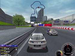 ☆ゲーム内容 このゲームは日本でも良く知られている、Ford Motor Companyの完全バックアップの元に制作された、Ford車オンリーのカーレースゲームです。 制作はElite Systemsですが、ここからは過去にもGRAND TOURINGというレースものがリリースされていますので、そちらも読まれると参考になるかもしれません。 基本的なものは変わらないような感じですので(^^; DEMOではPumaを使用することができ、コースはEastCoastでプレイできます。 時間制限も無く、たっぷり走れるのが嬉しいですね。 ☆オプション類 オプション類はそこそこに備わっています。 最初にグラフィックス設定とサウンドの設定メニューが表示されますが、非常に多岐に渡る設定が可能で、逆に初心者はとまどう事でしょう。 もうすこしこの辺りの設定は絞った方が良いと思います(640x480x16bitから1280x1024x32bit程度に)。 サウンドはEAXやDS3D、A3Dなど主なものがサポートされています。 ゲーム中のオプションも、コントロール、ディスプレイ、レース、サウンドの設定ができますが、何れも大ざっぱであまり使いものにはなりません。 特にアナログコントローラの設定がギアシフトボタンのみの設定しかなく、これにはがっかりさせられました。 ☆グラフィックス グラフィックスは、なかなか綺麗です。 周囲に配置されたオブジェクトも結構細かく表現されていますし、何より車体のディテールが細かいのが印象的です。 ちょっと車体に角張っているところは有りますが、綺麗なシェーディングの掛けられたリアビューは必見です。 また車体テクスチャーが非常に細かく、スポンサーステッカーなどにテクスチャ解像度の低さによる滲みなどが全く見られなかったのには驚きです。 環境マッピングもそこそこ綺麗ですが、機械的に切り替えられている事が一目瞭然のため、少々興ざめです。 後はリプレイが備わっているのが特徴でしょうか。 リプレイは最大10本まで保存でき、様々な視点から映像を見ることができます。 早送り、巻き戻しなどの機能も備え、この辺りの好感度は高いです。 しかしリプレイ中一時停止にした時に、車体は止まっているのにドライバーだけ動いているのは結構不気味ですね(笑)。 ちなみにゲーム中、リプレイとも視点が自車を中心に8つ+TV視点(ウインドウ+全画面)まで有りますが、肝心の走行時に使える視点が実質1つしか無いのはどうかと思われます。 せめて全画面、ドライバーズ視点、追加の追尾視点が欲しい気がしますね。 描画速度は今回のテスト環境の場合、800x600x16bitで何とか30fpsというのが残念でした(全てフル設定)。 1280x1024x32bitでは13fps程度と、プレイする気にもならない動作速度でした。 最近のレースゲームの中では、結構重い方になりますね。 ☆サウンド DEMOですがBGMが備わっています。 しかしエンジン音が、かなりやる気ない感じなのは残念です。 走行中はひたすら高音を出すのみで、まるで掃除機でも掛けているかのような味気ないサウンドです。 体に響く重低音など期待すべくも有りません。 まさか実車がこういう感じなんでしょうか。 ただし3Dサウンドの効果は出ており、CPUカーの脇をすり抜ける時だけ臨場感を感じます(笑)。 ☆コントロール 操作はキーボードやコントローラが使用できますが、オプションの項目で挙げたとおり、細かい設定がまったくできないのは残念です。 またアナログコントローラ使用時でも、なぜか挙動がデジタルになったままなのが不思議です。 これではハンドルを使うことができませんね。 デジタルコントロールではまずまずの挙動で、特に怪しい感じは有りませんでした(^^; デジタルな反応のため少々扱いにくく感じますが、車体の挙動自体はまずまずの出来です。 最近のDEMOの中ではなかなか接地感を感じられる方のソフトなので、車体のアナログでの操作が楽しみですね。 ☆ゲーム性 コースは周回レイアウトで、都市内の公道をクローズドしたタイプのものです。 途中トンネルやヘアピンなども有り、車幅も広くリッジレーサー的なコースレイアウトは好感が持てます。 しかしせっかくの良いコースも、DEMO車が非力なためかスピード感を味わう事ができないのが残念ですね。 またFord車シムのためでしょうか。恐らくFF車と思われるDEMO車では豪快なドリフト走行などとても出来なく、走っていて爽快感は感じられませんでした。 せいぜいドライブしているかな・・・という感じです(^^; ☆総評 最近のDEMOの中ではオプションも有ったり、グラフィックスもなかなか良かったりで好感は持てたのですが、では実際このDEMOをプレイして製品版を買いたくなったかと言えば、そうとも言えないのが実際の感触です。 DEMOで使用した車種がコンパクトカーだった事も有るのでしょうが、ドライビングの爽快さが全く感じられませんでした。 また描画速度の重さも残念なポイントです。 ですからFord車オンリーというこのソフトの特徴を評価する人のみ“買い”ではないかという印象を受けま