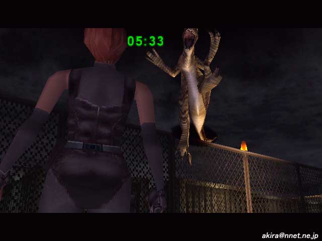 ☆ゲーム内容 このDEMOはアクションシューティングテラーゲームの中でも定番中の定番として知られているバイオハザードシリーズと同系列のゲームです。 バイオハザードシリーズと異なるのは、敵が化け物では無く恐竜で有るという事です。 このDEMOでは女性キャラを使用でき、コスチュームを四種類から選択可能です。 しかし原始人スタイルにすると武器まで・・・うーん、ちょっとこのセンスは(^^; このDEMOでは本編ミッションとOperation:WIPEOUTをプレイできます。 本編ミッションは10分の制限付きで、制限時間内なら自由に行動可能です。 Operation:WIPEOUTは5分という制限時間内にエスケープポイントまで到達するゲームです。 ☆オプション類 とりあえずグラフィックス、サウンドに関する簡易的なものが備わっていますが、これは製品版と同等だと思います。 もともとコンシューマからの移植ですから、こんなものでしょう。 ☆グラフィックス 相変わらずPCに移植されても背景テクスチャ等が荒いですね。 ポリゴンオブジェクトのテクスチャの解像度までコンシューマと変化無く、カプコンのPC移植に対する意欲の無さが感じられてナイスです。 移植するだけ感謝しな、という事でしょうか。 解像度も640*480で、Socket7+Voodoo2等の数世代前のマシンでも快適にプレイできるレベルだと思います。 こういうものを海外でも普通に売るんですね。 あちらの方はこれで納得してプレイするんでしょうか。 どう考えても背景や3DオブジェクトのテクスチャをPC用に高解像度なものに変更して、更にポリゴン数も増やし、パースペクティブコレクションももうちょっとしっかりしたものにした方が、PCユーザーもコンシューマとの差別化という事で納得すると思うんですが。 あとポリキャラの顔がしゃべっていても変化しないのは、今となってはダサイですねー ☆サウンド うーん、なにも言うことが有りませんね。 コンシューマと同じという事で・・・ ☆コントロール 操作はPADかキーボードで行います。 やはりここはPADでプレイした方が気分でると思いますが、実際にはキーボードを使ってもなんら支障は有りません。 元がコンシューマらしく、操作体系は非常に簡略化されており、簡単に慣れることが可能です。 しかし相変わらずこの手の3rdパーソンビューというか、視点固定型ゲームは違和感有りますね。 それにやはりメインコントロールはマウスで瞬時にサクサクおこないたいと思うのは、PCゲーマーならではの感想なんでしょうか(^^; ☆ゲーム性 バイオハザード系列という事で、パズル要素ありナゾ有りアクション有りと盛りだくさんです。 見えない所から恐竜に襲われるという恐怖の演出も変わり有りません。 良くも悪くも使い古されているシステムですから、安心してプレイできます。 この辺りPCゲームだと、あまりにも斬新すぎてプレーヤーがシステムに付いていけず、肝心のゲーム性をそこなうという事もあるので、コンシューマからの移植はこれからも歓迎です。 ☆総評 定番ゲームという事で、プレイした感じは無難なものでした。 女性キャラがバイオハザードよりアニメチックでちょっとイヤだとは思いました(^^; 顔も・・・ なんかキャラ的にジルの足下にも及ばないような・・・ あ、個人的な意見です(笑)。 コスチュームももうちょっとひねりが足りなかったかという感じです。 原始人ルックは絶対に必要有りません(笑)。 DEMOは10分の制限付きですが、これでも十分製品版の雰囲気を味わえると思えます。 プレイ画面と同じエンジンを使用したムービー部分もシームレスで移行し、プレイしていて自然に引き込まれます。 本編DEMOとは別にあるOperation:WIPEOUTですが、これが異様に難しい。 元々の難易度が非常に高い上に、時間制限きつすぎです。これクリアできる人いるのでしょうか。 しかし流石にそつがない作りで一瞬製品版買おうか欲が出ましたが、よく考えるとバイオハザード2も完全にクリアしてなかったので、やはり攻略本無しではクリアが難しいゲームはパス、と思い直しました(爆)。 それ以外の人には勧めても問題ないかと。 −評価−