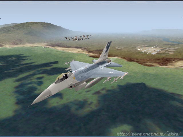Novalogicによる、Glide対応フライトシミュレーションゲーム。 Novaogicと言えばCOMANCHEシリーズやF22 LIGHTNING 2、Raptorで有名だが、何時も他のベンダーと毛色の異なるコンセプトのゲームを作ることで知られている(笑)。 今回のF-16 Multirole Fighterは、Novalogic自らが運営するマルチプレイヤーサイトNovaworldに接続することで、なんと128人ものプレーヤーが対戦することが出来る。 しかもこのゲームサーバーには無料で接続でき、F-16 Multirole Fighterの他に、MIG29 Fulcrum、F-22 Raptorを相手にすることが出来るのだ。 このDEMO版からでもNovaworldに接続出来るそうなので、電話代が気にならない人はぜひチャレンジしてみては如何だろうか。 DEMOのミッション内容は中国上空をF-16 Multirole Fighterでパトロールするというもので、Mirage2000やMIG29 Fulcrumが敵機として登場する。 DEMOながらセットアップ画面は製品なみのもので、ゲーム設定やVIDEO、SOUND、キーコンフィグを行うことが出来る。 これだけでも評価出来るのだが、実際のゲーム画面での非常に美しい画像にはさらに驚いた。なんと機体の照り返しが見事に表現されているのである。 これにより、金属質の機体の質感が非常にアップしている。 機体ディテールも抜かりが無く非常に細かいところまで造り込まれており、半透明のキャノピーの中にはパイロットやHUDも確認できる。 しかしさらに驚くのはその地形描画で、良くありがちな似たようなテクスチャーが敷き詰められていたり、ポリゴンの隙間が見えていたり、地形が遠くからにょろにょろと描画されたりする事が一切無く、薄霧の掛かった非常に美しい景色を創り出している。 しかもこれだけ美しい地形描画を行いながら、非常に滑らかな動作を行っているのだ。 目測だが30fps以上は出ているだろうか。下のIAFの最高ディテール時とは比較になら無い速さと美しさである。 200MMXとVoodooでこれだけの事が出来るのは、ひとえにNovalogicの高度なプログラミング技術のなせる技だろう。 流石である。 さてF-16 Multirole Fighterの操作感だが、センシティビティの設定が無いためもあるのだが非常に敏感に機体が反応してしまい、扱いにくく感じる。 はっきり言って、ジョイスティックよりキーボードの方が操作しやすい。 また操作体系が他のフライトものに比べおおよそ半分なのは良いのだが、F22 LIGHTNING 2ですら備えていたオンスクリーンレーダーや、無ければ困るオートパイロットモードが無いのには閉口した。 しかも敵機のミサイルを補足する事すらなく、たった一発のミサイルで百発百中撃墜されるのは納得いかない。 警報のみで、一体どうやって回避すれば良いのだ? 確かにグラフィックス面では素晴らしいのだが、ゲーム性でF22 LIGHTNING 2に及んでいない感じがする。 プレイしていて爽快感に乏しいのだ。 もしかしたら、DEMO版ではゲームの難易度に関する設定が見当たらないので、デフォルトでACEにでも設定されているのでは無いだろうか(笑)。 もっともこのゲームはシングルよりマルチプレイに重きを置いている様なので、人間相手なら対して問題にならないとは思うのだが。 −2nd impression− 最初にリリースされたDEMOに対して不評が多かったのか、新しいDEMOがリリースされている。 このDEMOでは、上のスクリーンショットに出ているようなダサイデザインのコックピットではなく、かなりナイスなデザインに変更されている。 さらにキャノピーにコックピット内部が投影されていたり、上記で述べた欠点がほぼ全て改良されているという、かなり良い内容になっている。 さてこのDEMOからNovaWorldに接続してみたのだが、8人位が接続している状態でも至極反応が良好で軽快なのには驚いた。 MotorHeadすら4人以上になると重く感じたのに、さすが128人接続OKのNovaWorldだけ有るといった感じだ。 プレイ感想だが、やはりというか対人戦は面白い。 当然だが、動きが人間くさく予想できない飛行をするので、それにこちらも対応しなければならないのだ。 撃墜されるとスタートした飛行場から再スタートするのだが、自分を撃墜したプレーヤーが飛行場上空をぐるぐる旋回して、こちらが離陸するのを待ちかまえていたりといった、スリルのあるプレイを楽しむことが出来る。 また対戦にもデスマッチモードとチーム戦モードが有り、チーム戦の場合には見ず知らずのプレーヤーから「攻撃されている。助けてくれ!」みたいな通信が入ることもあり、こちらもなかなか楽しめる。 この面白さを知ってしまうと、対戦するためだけに製品版を買ってしまいそうで恐ろしい(笑)。 |