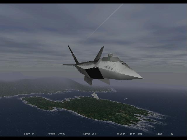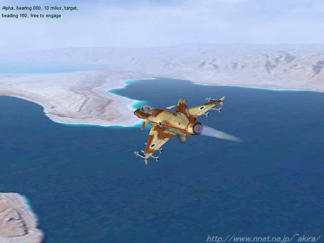 Jane's Combat Simulationsによる、MMX/Direct3D対応フライトシミュレーションゲーム。 LONGBOW シリーズやF-15など名作をリリースし続けるJane's Combat Simulationsが、今度はイスラエル空軍を題材にしたフライトシムをリリースした。 このゲームはこれまでに無い素晴らしい地形描画とリアルなフライトモデルを売りにしている。 実際Jane's Combat Simulationsで公開されていたスクリーンショットは非常に美しかった・・・ だが実際にこのDEMOを起ち上げると、まるで初代COMANCHEを思わせる荒い画質に思わずのけぞってしまったほどだ。 その後メニューでグラフィックス設定を最高にして、なんとか見られるような画質にはなった。 Isreli Air Forceではグラフィックスエンジンに一般的なDirect3Dを使用せず、独自の3Dエンジンを使用している。 このエンジンは衛星写真によるステレオグラムから標高を算出し地上の起伏を再現しており、何もない砂漠の様な所では100m/Pixel、多くの地帯では20m/Pixel、また最大で2m/Pixelの地形再現力が可能である。 DEMOの地形の荒さから見ると、この地形ではおそらく100m/Pixelで再現しているのではないだろうか。 流石に200MMXマシンでフルディテールにすると、体感で10fpsを切るような感じだった。 このゲームに限ってはVoodooの恩恵はあまり受けられなく、CPUの演算力が大いに描画速度に影響するのだろう。 しかしテクスチャーを表示するときに最初は荒い画像、次にさらに細かく最後にアンチエイリアスを掛けるという処理速度を犠牲にしない仕組みになっているのには好感がもてる。 フライトモデルはそれほどリアルではなく、どちらかと言えばアーケード風の感じがした。 ジョイスティックの入力に素直に反応するので、初心者向けかもしれない。 しかし現役パイロットをスタッフに加えたリアルなフライトモデルを売りにしているはずなので、もしかしたらDEMOで飛ばせるLaviは本当にこの様な機動をするのかもしれない。 (Laviはデルタ+カナード翼のEF2000風の機体) 米軍機やロシア機に乗り飽きた中東好きの人にお勧めである。 Referenced FPCUGM#14