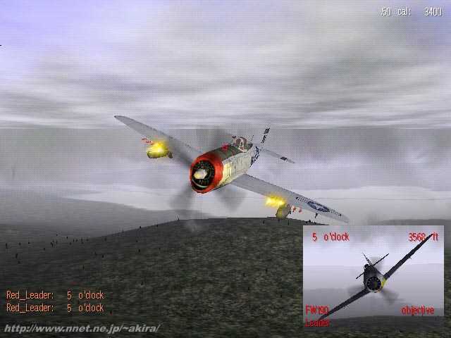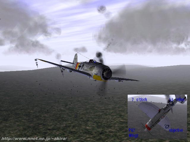 ane's Combat Simulationsによる、Glide、Direct3D対応レシプロフライトシミュレーションゲーム。 このゲームは第二次世界大戦をテーマにしたレシプロ機フライトシミュレータで、DEMOで使える機体はアメリカ側のP-47と、ドイツ側のFw190です。 このDEMOでは立ち上げるごとにP-47の対地攻撃ミッションとFw190による空戦ミッションが切り替わるようになっており、それぞれ飛べる時間は6分に制限されています。 先にリリースされたWWIIものフライトシムにEuropean Air Warが有りますが、WW II FightersはEuropean Air Warよりも若干アーケード寄りの位置付けに感じられます。 普通レシプロシムですと当然レーダーやロックオンサイトなどは無いのですが、WW II Fightersの場合レーダーの代わりに寮機による詳細な敵機位置報告の無線や、またロックオンした敵機の方向を随時しめす矢印、また親切にもロックオンしたオブジェクトを小さなウインドウでリアルタイムに映し出すシステムが備わっています。 さらにストールはさすがにレシプロ機だけ有って再現されているものの、ストール状態でのスピンは再現されていません。 これらの難易度を左右するシステムは製品版では自由に選択できるのかもしれませんが、DEMOで飛んだ限りではなかなか一般受けするシステムだと思いました。 またこのゲームの特徴として、既に十分に美しいグラフィックスだったEuropean Air Warをさらに凌ぐ、素晴らしいグラフィックスが挙げられます。 この美しいグラフィックスを見てもらうために、通常3枚から4枚しか掲載しないスクリーンショットを大幅に9枚掲載してみました(そのために少し重いTripodにアクセスする事になります)。 地形グラフィックスも緻密で遠距離からしっかり描画し、同じくJane'sの遠距離からずるずると描画するあのF-15のエンジンとはまったく異なるグラフィックスエンジンのように感じます。 地上オブジェクトも抜かりなく地面には木が生えていますし、なんと鹿まで走っているという話も有ります。 さらに機体の描画も素晴らしい品質です。 レゾリューションが上がれば、CGフォトグラフとしてそのまま雑誌に掲載できるのでは無いだろうか?と思わせるほどの緻密に機体が表現され、P-47の金属質な翼の質感などは本当に驚くばかりです。 また被弾した箇所がリアルに壊れ、翼がもげた場合に見ることが出来る翼断面までがリアルに造られており、被弾時のキャノピーの汚れやヒビまで表現されています。 光に関するエフェクトもいままで見たことがないくらい素晴らしく、機銃の発射口にきらめく光や機体への反射光、また大空を幾筋も飛び交う曳光弾。 機体が火を吹いたときも、まさに映画などで見るような実写さながらのリアルな爆炎など、もうため息をつくしかありません。 被弾した時にも、機体と銃弾が擦れ合って飛ぶスパークまで表現されています。 しかしこのゲームで一番驚いたのは、今までのフライトものが達し得なかった3Dの雲です。 今までのフライトものでは、雲は通過するまでは2Dのグラフィックスで、通過している最中はただ視界がぼやける霧のようにしか表現出来ませんでした。 ところがこのWW II Fightersの場合、まさに目の前に雲塊が浮かび、通過すると視界の遮られ具合もリアルに変化します。 同じように高射砲の炸裂煙も2Dグラフィックスではなく、3Dの質感で表現されています。 ただしそのために、European Air Warとは比較にならないくらい重くなるのですが・・・ 音響面でも素晴らしいものが有ります。 機銃の炸裂音から、後方から飛来する曳光弾の通過音。 被弾したときの派手な金属音。さらに爆雷を投下したときのリアルな風切り音など全ての音に重さが感じられ、フライトの臨場感を高めています。 まさに現在最高の質を誇るフライトシムで有ると言えるのではないでしょうか。 |