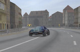 このコースはU@R_PROで最高の難易度を誇るコースです。コース長は短いのですが、その難易度のため走破にはかなり神経を使います。 ここを気軽に走れるようになれば、かなりのものでしょう。 コースレイアウトは全コース中一番凝っており、なかなかコースを覚えることが出来ない・・・ またジャンプポイントの直ぐ後にヘアピンコーナーが待ち受けていたりして、「むむ、やるな。Kalisto・・・」と思うこと請け合い(笑) しかしテクニカルなコースとは裏腹に、このコースの景観は古城跡や寂れた町並みだったりして、なかなかシックな感じを漂わせています。 また最後のオフロードコースもなかなか面白く、「今度は是非ラリー物を!」と個人的に思うほど(笑) Kalistoが作ればSEGA RALLY 2クラスのゲームが、簡単にPC上に再現できるのでは無いでしょうか。 実際サイドブレーキを使用した走行感覚は、SEGA RALLY 2そのものと言った感じです。 各コースの説明を簡単にしましたが、これほどユーザーを楽しませようとするコースはU@Rが初めてのような気がします。 これらのコースデザインは、現在のアーケードゲームすら凌駕する程の出来の良さではないでしょうか。 またコレは結構忘れられがちなのですが、レースのリプレイを自在に保存再生できる事も、このゲームの評価を高くしているポイントです。 コーナーリング命のこのゲームでは、リプレイが大きな意味を持つのですよ(笑) 欲を言えば再生するときにボタン類を隠す、フル画面再生コマンドが有ればもっと良かったと思う。 しかし再生アングルも選べるし、早送り巻き戻しもNASCARより自然な形に出来るので、100点を付けても良い感じですね。 これ程素晴らしいU@R_PROですが、唯一且つ最大の欠点と言えるものが存在します。 それは“ハマリ”です。 壁に直行したときに、普通のレースゲームであれば進行方向に自動的に方向転換してくれますが、U@R_PROの場合見事にそのままハマってしまうのです。 こうなったらもうギアをバックに入れて、後進するしか脱出方法が有りません。 シミュレーションならまだしも、アーケードスタイルのゲームでこれでは何とも頂けません。 せっかく乗っていたレースでも、このハマリに直面すると一気にやる気が落ちてしまいます。 レースの波を崩さないためにも、これだけは絶対改善して貰いたいですね。 それ以外では、現存する全てのレースゲームを凌駕する最良のソフトで有ると言っても過言ではないでしょう。 SEGA PCの人に、Kalistoの爪の垢を煎じて飲ませたい -ネット対戦- URP独特のネット対戦コースとして、“アリーナ”が有ります。 このアリーナは、大ジャンプ台が設置されているグランドを中心に、外周をトラックが走っている構造になっています。 この外周のトラックはさらに内側と外側のトラックに分かれており、内側は循環トラックですが外側はジャンプ台などのトラップ的建造物が配置されています。 このアリーナでの対戦形式は二つあり一つはデスマッチ、もう一つはラビットモードです。 デスマッチはデストラクションダービーさながらに、相手の車を追いかけ回し破壊するゲーム。 ラビットモードは、破壊は無しに一台が鬼になる追いかけっこゲームです。 このラビットモードはレースゲーム初の構想だと思いますが、かなり面白いです(笑) 鬼になった車は所定の時間内(例:一分)逃げ回れば勝ちなのですが、この鬼には敵車の位置は解りません。 追いかける側は、鬼の位置がレーダーで解るようになっています。 追いかける側は当然レーダーを元に追いかけ回しますが、鬼も姿の見えない追っ手を攪乱するためにワザと蛇行したり、変な所に隠れたりします(笑) さらに接戦になれば、追いつかれる直前でスピンターンかましたりのフェイントで追っ手を巻きます。 これは、どちらの側でも大いに楽しめるゲームだと言えます。 ちなみにこのゲームをやるときには、なるべく大人数でプレイすることをお勧めします。 二人でもそれなりに面白いのですが、段々追いかけるのに疲れること受け合いです(笑) Ultim@te Race Proの魅力満載! 一コースに付き、9枚のスクリーンショットを掲載しているので重いです。 そのため、別ウインドウに分けることにしました(でもCG容量650KBだから比較的軽いよ(^^;)。 |