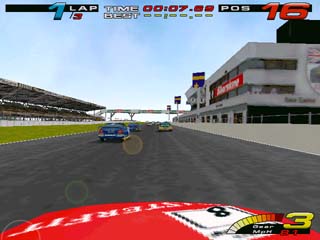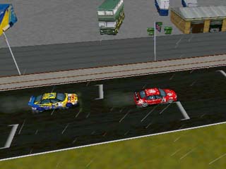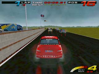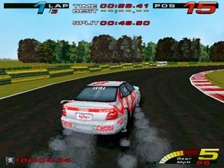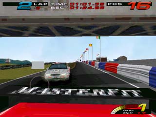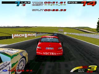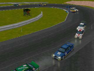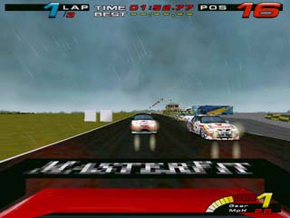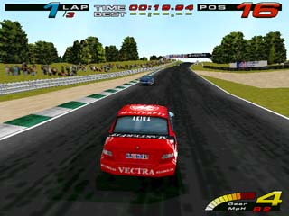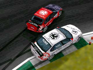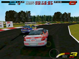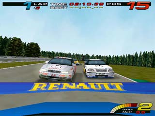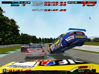 先ずは予選で3周コースを回り、ベストラップでスターティンググリッドを決定します。 レースの長さはSHORTとFULLを選べ、それぞれ3周と18周レースを闘うことになります。 チャンピオンシップはポイント制で、1位15ポイント、2位12ポイント、3位10ポイント、4位8ポイント・・・となっており、 次のレースに進むためには20ポイント必要ですので、もし1ラウンドで4位だった場合は2ラウンドでは2位以内に入らないと次のレースに進めないことになります。 レース中驚いたのは、他車に過度にアタックすると警告が出る点です。 警告を無視してアタックし続けるとポイントを引かれ、さらに無視すると失格になりレースを終了させられてしまいます。 これではデストラクションダービー並みの事は出来なくなりますね(^^; もっともフリー走行では関係なくアタック出来るので、ストレスを発散させたい方はフリー走行をご利用下さい(笑) SHORTレースは3周なので気軽にチャレンジできるのですが、レースが短いだけにミスした場合挽回するチャンスが殆ど有りません。 FULLレースは18周も走らなければなりませんが、それだけミスを挽回するチャンスも多くなります。 ところでDEMOでも気付いていたのですが、TTCCはAIカーが全て個性を持って走っているようです。 荒々しいアグレッシブな運転をするドライバーも居れば、コース手前で十分に減速する慎重なドライバーも居ます。 さらにAIカーは普通完璧な運転をするものですが、TTCCの場合AIカーどうしでバトルした末に、勝手に自滅する車も居てなかなか楽しめます(^^; 下のスクリーンショットにも有りますが、激しいドライビングをするRenaultのドライバーが、コーナーリングをノロノロ行っていたAIカーに突っ込むシーンが目の前で見られたりします。 こんな事は他のゲームではあり得ないのではないでしょうか(笑)。 またブロックをしている時に後方を見てみると、イライラしているAIカーが盛んに煽ってパッシングしている事も有ります。 もちろんドライバーによっては、パッシングしないで黙って避けていく車も有ります。 雨の日のレースなどではスタート直後に大渋滞が起き、クラッシュにAIカーが巻き込まれリタイアする様も見ることが出来ます。 もちろんAIカーの挙動だけではなく、自車の挙動も非常にリアルです。 サスペンションの動きのリアルさは、ドライバーズ視点の時に非常に良く理解する事が出来ますし、FF/4WDの違いもハッキリ現れています。 タイアのグリップ感覚についても非常にリアルで、スリップした時も納得できる感じがするのは特筆すべき点でしょう。 これら挙動のリアルさについてはDEMOレビューで述べていますので、ご覧下さい。 しかしこの様に素晴らしい所ばかりでは有りません。 まずリアルなツーリングカーレースが題目なのに、車のセッティングに関する項目が一切有りません。 今までのリアル指向レースゲームの中で、車のセッティングが無いソフトは見たことが無いのですが・・・ もっとも煩わしいセッティング無しで走りに専念できるという点では、欠点と言えないかもしれません。 しかし出来るに越したことは無いですね。 他にも代替視点は有るもののバックミラーが無い、コースが複雑なのにマップが表示されない、自分が現在どのレースポジションに居るのかが解らない、 幾らなんでもちょっと滑りすぎる感じがする、ドライバーズ視点でのインテリアが各車共通、ピットインはただのウォークスルーで味気ない、等の細かい欠点が色々有ります。 バックミラーの代替視点である後方視点ですが、これを使用すると完全に前方が見えなくなりますので、ストレートでしか使えないのが難点です。 しかしこれらの欠点は、まず目をつぶれる範疇です。 このソフトの一番我慢できない欠点は、リプレイが無い この一点に絞られるでしょう。 よく見ているとリプレイの機能が無い訳では無く、ただ単にリプレイ項目を付けなかっただけのようです。 恐らく理由は、FULLレースなどでのリプレイデータが膨大なものになる等のものでしょう。 しかしこのソフトほど、自分の運転やAIカーの動きを後からよく見てみたいと思ったものは無いので、この点は非常に残念です・・・ 個人的にはTTCCの完成度にかなり感動したので、次作であるラリーレースゲーム“Colin McRae Racing”(スバルチームのエースドライバー、コーリン・マクレー監修)に大期待しています。 是非ともRAC RallyやIRC、Screamer Rallyを越える硬派なゲームになることを望みます。 |