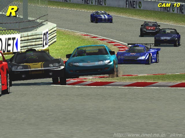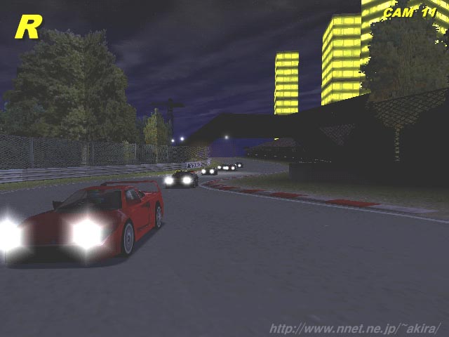 Midas Interactive EntertainmentによるGlide対応、3D F1レースゲーム。 タイトルからも解ると思うが、このゲームはF1ドライバーJohnny Herbertの協力を得て作られたリアル指向のF1レースゲームだ。 このゲームの特徴はリアルな3Dグラフィックスと、15ヶ国のコースを忠実に再現していること、車体の挙動や物理的接触による損害などをリアルにシミュレーションしている事だ。 他のF1ゲームと違い、残念ながらFIAの公認は得られなかったようだが、コースサイドの広告は実在の会社名を使用している。 F1チーム名とドライバー名を編集するエディターが付属しているので、自分で最新のデーターに書き換えることは可能だ。 DEMOではイタリアとモナコの2コースをそれぞれ2周走行することが可能。 しかしコース選択メニュー等が無く、立ち上げる度に変更されるのは何とも不親切なシステムだ。 他にもメニューそのものがないため、グラフィクス設定やコントローラー設定など、ゲームに必須の設定は全て行うことが出来ない。 もっとも走行後自動的にリプレイに入るのはDEMOとしては珍しい。 コントロールに関しては要ジョイスティックの様で、キーボードのみだとエラーが出て立ち上がらなかった。 変わりにPADを付けたのだが、これだと上下がアクセルとブレーキに割り当てられるため非常にコントロールし辛い。 ハンドルに付け替えてやっとまともにコントロールする事が可能になった。 Castrol Hondaもそうだったが、キーボードで遊べないと言うのは不親切だと思う。 DEMOはキーボードでもサクッと遊べる事が一番重要なのだ(笑)。 グラフィックスは最近の流行に倣い車体がつるてか状態なのだが、他のゲームと違い光源だけでなく周囲の景色まで映り込んでいるのには驚いた(最近は当たり前か!?)。 まあこれだけが原因ではないだろうが、お陰でかなり処理が重くなっている(その割に空のテクスチャーは無かったり・・・)。 周りに他の車が走っていないときでも15fps以上は出ていない感じだ。 この傾向は建物が多いモナコで顕著になり、はっきり言って重すぎてまともに走れずゲームにならないほどだ(完全に10fps以下)。 ちなみにDEMOではグラフィック設定をマシンパワーに合わせ、有る程度自動で行っているようだ。 このゲームの売りはリアルなシミュレートらしいが、そんなに気合いを入れているわけではないようでそれ程難易度は高くなく、走った感じではF1RSとFormula 1の中間程度の印象を受けた。 サーキット物としては常識になった各種アシスト機能も充実しており、DEMOでもそれらのON/OFFは可能だ。 視点はまずまず数が有るのだが、実際の走行に役立つ視点がドライバーズ視点と追尾の二つしか無いのは寂しい。 出来れば全画面モードと、もう一つ高さの異なる追尾モードが有ると良いのだが。 全体的な印象として、グラフィックスはF1RS以下でFormula 1と同程度。 難易度はFormula 1以上F1RS以下。 サウンドもFormula 1以上F1RS以下。 動作スピードに関しては過去最悪。 操作性はまずまず(Formula 1のシミュレーションモード程度)と言った感じだろうか。 しかしDEMOとしての出来は全くダメだ。 |
