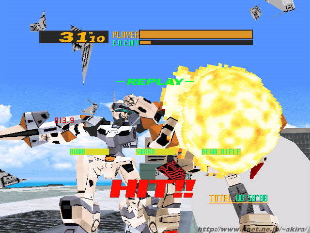 ガンが使えないことは賛否両論有るだろうが、私にとってガンは難しすぎるので(レーザーサイトでも有れば別だが)PC版が一番プレイしやすい(笑) このVC2をプレイするときには、是非とも3Dカードを使用してプレイして欲しい。 SEGAが推奨しているのはVoodooとPermedia2、RIVA128だがこれらのチップを使用したカードなら、アーケードレベルの画面を拝むことが出来るだろう。 間違ってもViRGEやRAGEなどの旧世代3Dチップでプレイして、遅いなどと文句を言わないこと(^^; |