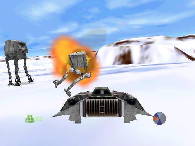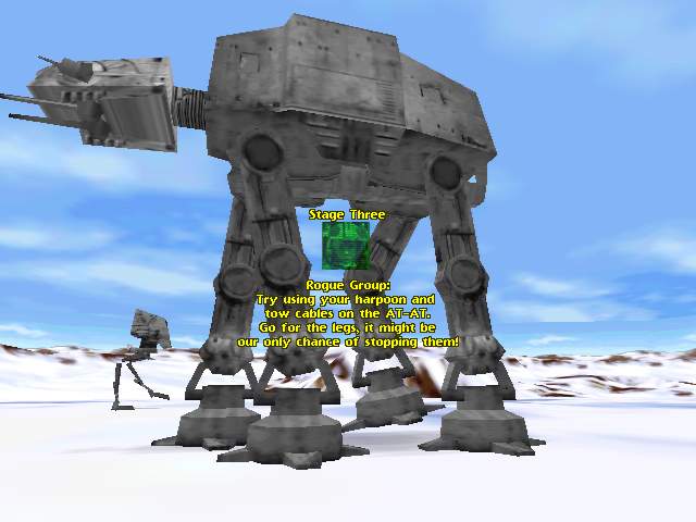 Lucasartsによる、スターウォーズを題材とした3Dシューティングゲーム。 基本的にN64からの忠実な移植。 Episode1にあたる世界を、DEMOではMission1の「Battle of Hoth」の4ステージを体験することが出来る。 Mission1ではSnowSpeederを駆り、AT-STやAT-ATと闘うことになる。 巨大なAT-ATと闘うときには、映画と同じようにワイヤーを足に絡めて倒す戦法が使えるのは嬉しい。 この時には自動的にAT-ATを中心とした外部視点に移るので、高度や距離に注意しワイヤーを切らさないようにしながらAT-ATの周りを三周すれば良い。 巨大なAT-ATが、轟音を立てながら沈む様は壮観だ。 グラフィックはN64に劣らない(解像度では勝っている)程の美しさだ。 そのために、なんとこのゲームはVoodooなどの3Dカードが必須なのである(笑) ちなみにWinゲームながら、98は動作機種に入っていない。 |