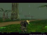 お勧め装備:MP5 or M249麻薬密造所のバラックを先ずは破壊しなくてはいけないので、目印となるスモークグレネードをバラック付近に投げ込み、無線で航空爆撃支援要請を行いましょう。 爆撃後、バラックに隠れている敵を掃討しながら、ジャングルの中に突入! 此処からが地獄です・・・(^^; 今までのように敵兵が潜んでいる場所にM203をたたき込む技は、此処では残念ながら通用しないようです。 このフェーズを何十回とトライして唯一成功したパターンは、装填数が多く連射の効くMP5を持ってひたすら走ること!(笑) そして常に「MOVE UP!」のかけ声で同僚を先行させておく事です。 先行する同僚に敵兵を引きつけて、後方からねらい打ち。 後半は特に弾数が多い上に連射も可能という強力なI-37が手にはいるので、今までの憂さを晴らすべくガンガンぶっ放す! 開けた所に出たら、後は無線で迎えのヘリを要請するだけです。 −Honduras Phase 1−