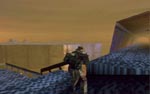 ちなみに途中でRPGを入手出来るのですが、その時には戦車は遙か後方と言うのがなんとも空しいですね(笑)この面では時間制限は無いのですが、立ち止まっての狙撃などとんでも無いので、結局ここでもM249を使用しひたすらGPSを頼りに目的地まで走る事になります。 この面では相棒があまり頼りにならないので、最初から相棒は“待機”させておき、取り敢えず一人目で行けるところまで行きましょう。 またスタート地点から右手に見える建物の影にメディカルボックスが有りますので、是非とも確保しておきましょう。