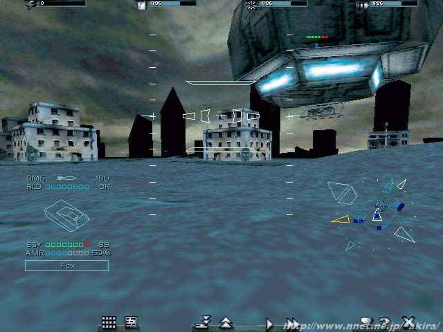 Microsoftによる3Dアクションストラテジーゲーム。Direct3D対応。 このゲームは今まで難しかった、アクションとストラテジーというゲームの二大要素を見事に融合させたゲームです。 さすが金に糸目を付けないMicrosoftです(?)。 ちなみに私の場合アクション要素が多くプレイ時間を占めたので、アクションに分類しました(笑)。 このDEMOではシングルモードで練習ステージが3つ実戦ステージが2つ、マルチモード専用ステージが2つも有る太っ腹なDEMOとなっており(製品版ではシングルだけで41ものミッションが有る)、さらに自由なセーブ&ロードが可能となっているので、模範的なDEMOとして高く評価することが出来ます。 私が海外ストラテジーゲームを敬遠する理由の中に、ルールが複雑なのにマニュアルを読破する事が困難だという点が有りまが、その点このゲームはストラテジー面が良く理解できなくても、取り敢えずアクションモードで力任せにクリア出来るという利点が有ります(結局それではクリア出来なかったので、嫌々ヘルプを読んだけど)。 実際のゲームプレイでは、まず画面の汚さが目に付きます(笑)。 最近の最新テクノロジーを駆使した3Dアクションゲームを見慣れた目には、ですが。 これなら、わざわざDirect3D対応にしなくても良かったような気がします(^^; 本当に飾り気のない3Dストラテジーといった感じの画面ですね。 このゲームは、最初は自分のステーションの画面から始まります。 ここで戦略マップを見ながら、作戦指揮を行うことになります。 またこのステーション画面ではユニットの生産や、エネルギーの供給や配分と言った事も行います。 ゲーム中のストラテジー要素は、全て此処に集結されていると言って過言ではないでしょう。 さて、このステーションでユニットをわっさわっさと造る訳ですが、普通のストラテジーゲームと違い(恐らく)無限にユニットを作り出すことが出来るのは、このゲームの珍しい点かもしれません(敵もそうだと恐ろしいが・・・)。 もっともエネルギー供給スピードは一定なので、いきなりドサッと造ることは出来ませんが・・・ 次にステーション前に配置されたユニットに対して戦略マップ上から指示を出すわけですが、ぞろぞろと大群が敵地に向かって適当に突き進む様は微笑ましくさえ思えます(笑)。 さらに敵兵力と遭遇したら適当に戦ってくれるので、一々ユニット毎に攻撃目標や攻撃手段などを出さなければならない他のゲームと違い、大変楽にゲームを進める事が出来ます。 とまあこんな感じでサクサクゲームが進むので有れば、Microsoftがわざわざ苦労して(?)アクションとストラテジーを融合した意味が有りません。 実は、戦術という面でこのAIユニットたちは非常におバカさんなのです。 ですからステーションからマップだけ見て指示を与えているだけでは、恐らく一向に埒が明かないでしょう(特にDEMO5面目)。 この様な、例えばMAPで戦況を見ながら「おや? 自軍5ユニットが敵2ユニットにこてんぱんにやられてしもうた!?」と言ったような場面に遭遇したときには、すぐさま出動しているユニットに飛び移りましょう。 人間が操縦すれば、逆に敵5ユニットを一機で撃破する事も可能です。 この時には完全にアクションゲームとなる訳で、なかなか画面も精錬されて見やすく良いのですが(照準とかかっこいいかも)、ナゼか操作性は芳しく有りません。 特にタンクは最悪で、操縦するだけで手一杯になりやすいのが欠点かもしれません。 特に複雑な地形では敵に弾を当てることすらままなりません。 と言うわけで、私は主にヘリを使っていました(^^; 頑丈な敵タンクもヘリにはかないません。 しかしこのヘリにも強敵がおり、ヘリの相手には相応しくないような複葉機にかなり苦しめられることになります。 こいつが4機位で束になってかかってきたら、同数のヘリどころかステーションすらアッと言うまに破壊されてしまいます。 また第一次世界大戦で使われた、世界初のタンクに似たユニットも非常に堅いし、なんと敵は対空砲まで所持しています。 DEMO5面目でこの難易度ですから、製品版での他のステージの難易度を考えると頭が痛くなりそうです。 もっとも面によって攻略のツボが有りますから、様々なルートを試してみるのが良いかも知れませんね(基本?)。 ちなみに難易度が上がるに従って、アクションよりストラテジー寄りのプレイになるような気がするのは私だけでしょうか? それならちょっと遠慮したいかもしれません(爆)。 しかし、アクションとストラテジーの融合を見事に果たしたMicrosoftは流石です。 しかしこのDEMOに非常にハマッてしまった事は確かですので、皆さんの製品版の感想が楽しみです(笑)。 それからですかね。買うとしたら(^^; |
