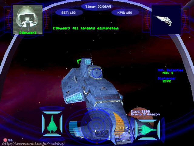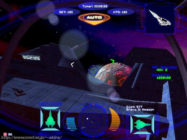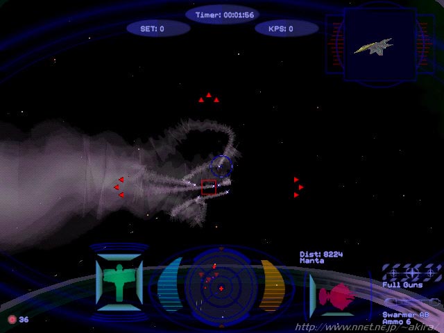 Originによる3Dスペースシューティングゲーム。DD、Direct3D、Glide対応。 このゲームはOriginの超有名スペースシューティングゲームWing Commanderシリーズの最新作にあたる。 それだけでも話題になるのに十分だが、なんとこのソフトは無料で公開されているのである。 この事は、恐らく世界中のゲーマーを驚かせたに違いないだろう。 また先だってInetで流れたニュースは実はジョークで、実際には結構遊べるただのDEMOだと思った人もかなり居るはずだ。 しかし私は現に、タダでDLしたこのWing Commander:Secret Opsをプレイしている(笑)。 もちろんDEMOにありがちな制限は全くない。まったく信じられない事が起きたものだ。 このソフトのフルバージョンは本体とエピソード1(4ミッション)、それにスピーチデータを含んでおり、約112MBという非常に巨大なものだ。 もっとも今までWCシリーズの売りだった、ハリウッドの俳優達を起用した豪華なムービーは含まれていない。 これがWCシリーズの楽しみの一つだっただけに残念だが、これが制作費を最大に圧迫(実写映画並み)していたのも確かだった。 まあ無料で配布されているのだから、これはいたしかた有るまい。 さて最初にプレイ出来るのはエピソード1だけだが、これから随時エピソードは追加されて行き、最終的には7つのエピソード計56のミッションをプレイできる事になる。 実際のプレイだが、前作のプロフェシーと大して違いは感じられなかった。 もはや完成されたシステムなので、これは当然と言えるかも知れない。 敵も同じくプロフェシーで出てきた異星人だった。 グラフィックスにも特に前作からの変化は見られない。相変わらず高いレベルだ(Glide)。 しかし変化は無いと言ってもフルポリゴン初期のWCIIIの頃から比べると、かなり進歩していると言える。 母艦のグラフィックスは少し前ならOPクオリティだし、背景の惑星グラフィックスも格段に綺麗だ。 実際今回は実写ムービーは省かれ、その代わり全てリアルタイム3DCGで代行している。 操作はWCIIIの頃から比べればよりシンプルになってきているように感じた。 シンプルで有れば有るほどシューティングの専念できるので、これは嬉しい事だ。 敵機の機動も機種毎に異なるし、ミッションが進むにつれて新しい敵機が登場したりするので飽きることも無い。 また使用するキーも普通の3Dアクションゲームに毛が生えた位にしか使用しない。 操作系が煩雑だと言うことでフライトものを敬遠していた人(私?)でも直ぐに馴れると思う(相変わらずルーキーだが(笑)。 前作から大して変化はしていないが、しかし目新しいと言えばミサイルシップ(勝手に命名)のマクロス風ミサイルか。 これはロックONすれば複数のミサイルが敵を追尾撃破するもので、威力的にはかなりのものがある。 もっとも全体としては Descent:FreeSpaceの様な新鮮さは感じられなかった。まあこれは枯れてるWCシリーズだから当然だろう。 しかしなんと言ってもWing Commander:Secret Opsの魅力は“タダ”と言う一言に尽きるかも知れない(笑)。 出来れば次は次期ストコマ等をリリースしてくれれば言うこと無しなのだが。 当然これは金を払ってでもプレイするだろう。 -Direct3D vs Glide- Win98でGlideにてWC:SOが起ち上がらなくなるというトラブルに見まわれたため(現在は解消)、仕方なくD3Dモードで起ち上げて見ることにしました。 するとGlideと比べて、粗い画質と画像表示の遅さに愕然としてしまいました・・・ もっとも初期状態でGlideの場合は最高表示品質、D3Dの場合は中品質になっていましたので仕方が無いのですが。 ゲーム開始後D3Dモードも最高画質にしてプレイしたのですが、最高画質にした事が仇となりコマ送りに近い表示速度になってしまいました。 しかもこの状態でも、Zバッファリングが正確に行われていない感じです。 レンズフレアも相変わらずメッシュ状で、Glideでの表示と比較すると明らかに劣ります。 その後Glideで正常に起動するようになったのですが、D3Dでの状態を目にした後だけに、まるでCPUを200MMXからP2-400に変えたかのような劇的な変化に感じられました。 フレームレートは明らかに三倍以上出ていますし、画質も荒さがとれて非常に滑らか。 ポリゴンもきっちり整合がとれ、非常に美しいです。 確かにVoodooはD3Dが比較的苦手なのですが、D3DとGlideというAPIの性能差をまざまざと見せ付けられたような気がしました。 |
