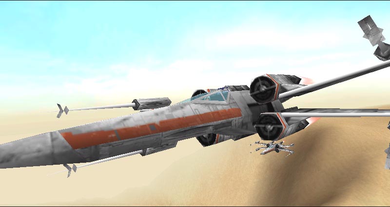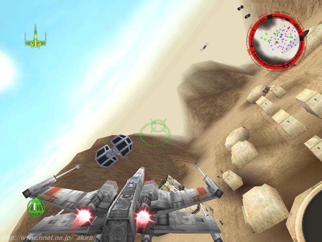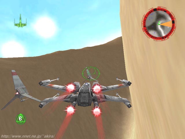 Lucasartsによる3Dシューティングゲーム。Direct3D、Glide(製品版)対応。 Shadows of the Empire以来、久方ぶりのStar Warsを題材としたシューティングゲームの登場だ。 Star Warsを題材としたシューティングゲームにはX-Wing vs TIE-Fighterの様にシミュレーションよりのものと、Rebel Asaultシリーズの様にアクションゲームよりのものが有るが、このStar Wars Rogue Squadronはどうやらアクションゲームよりの様だ。 DEMOでは一つのステージをX-Wingを使用してプレイする事ができる。 しかし機体セレクト画面ではX-Wingの他にA,Y,V-Wing,Speeder,さらにミレニアムファルコン号(同型機)も見ることができる。 ゲーム内容だが、残念ながらStar Warsシューティングゲームで定番のスペースドッグファイトでは無く、惑星上での戦闘のみの体験となっている。 このステージ、見た目ではShadows of the EmpireのDEMOと同じ様な印象を受けた。 DEMOミッションは同盟軍基地を襲う帝国軍マシンを排除するもので、もたもたして時間を掛け過ぎない限りクリアは出来るようになっている。 最後の方ではTIE-Bomber群との戦闘も待っている。 プレイした感じも、やはりアーケード的なShadows of the Empireと同様の印象を受けた。 しかし自由な動きが殆ど出来なかったShadows of the Empireに比べて、宙返りが出来る等少しはX-Wingを振り回しているという感じがする。 視点は追尾視点が数種と自機を前から見る視点、コックピット視点が備わっている。 しかし残念なことに全画面視点が備わっていないため、コックピット視点では視界が悪く、追尾視点では自機が邪魔になってプレイしにくいといった感じだ。 またグラフィックスを最高設定にしても高速な描画を行えるのは良いものの、飛行している肝心の自機が遅いため今一爽快感を感じられない。 もっともこれはゲーム性を優先させた結果だろうから、これがこのゲームの欠点になることは無いだろうが、少し気になってしまった。 しかし前述したグラフィックスだが最近の主流になっているように、以前はムービーで構成されていた導入部分等も全てゲーム中と同じ3Dで構成出来るほど、ムービーと3Dグラフィックスが近づいてきている。 これはゲーム中の画質とムービー画質が余りもかけ離れていた昔には想像も出来なかった事だろう。 もっとも私個人としては、Rebel Asaultシリーズの様にムービー主体のゲームの方が好みなのだが。 そうそう、Star WarsファンでRebel Asault 2をプレイしていない人は、是非とも購入して素晴らしいムービーを堪能して欲しいものである。 今一レンダリングされた人物にはなじめないという人にも、実際の俳優達が出演しているRebel Asault 2はお勧めである。 今となっては古い作品だがゲーム部分すら今でも十分面白いし、何よりPentium100MHz程度で美しい動画が十分滑らかに動くというのが素晴らしい。ちなみにCD二枚組で日本語字幕版も出ている。 少し逸れてしまったが、地表を同盟軍の有志達が走っていたり、地面に接触するときに舞い上がる砂塵等、Star Wars Rogue Squadronはグラフィックス面でも十分なクオリティーを持っている。 コックピットが半透明で、中のパイロットまで見ることが出来るのはこの作品が初ではないだろうか。 しかし最新のDirectX6テクノロジーを持ってすれば、さらに素晴らしいグラフィックスを実現させる事が出来るのでは、と思わせる隙も有るものだった。 つまり一年以上前にリリースされたShadows of the Empireから、対して進歩を感じられなかったのだ。 もっもDEMOのたった一ステージ、しかも惑星上の戦闘ではDirectX6採用の成果を見ることが出来ないのかもしれない。 機会が有れば、是非ともスペースファイトを楽しんでみたいものだ。 |