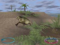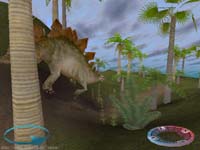 Action Worksによる3Dアクションシューティング&環境ゲーム。Glide対応。 このゲームはアメリカで大ヒットしたハンティングゲーム、“DEER HUNTER”と同様のシステムを採用した恐竜ハンターゲームである。 ゲームの舞台となるのは西暦2167年に発見された惑星“FMM UV-32”で、この惑星は地球より小さいく50何百万年も地球より年若いのが特徴である。 プレーヤーはこの惑星を管理する研究センターの客として、恐竜ハントを楽しむ事が出来るのだ。 DEMOでは一つの島で、StegosaurusとAllosaurusをショットガンで狩る事ができる。 DEMOなので選択は出来ないが、製品版ではTyrannosaurusやTriceratops他のハントや、スナイパーライフル、クロスボウの使用も出来るようだ。 実際にプレイすると、そこに広がる世界はまさにジュラシックパークそのもの。 空には飛竜が舞い、近くをStegosaurusが歩く地響きが聞こえるという、恐竜好きならそれだけでたまらない世界が広がっている。 また狩りを楽しむにはちょっと速いかもしれないお子さま&健全な親子の為に、恐竜達を観察するだけの観光モードも備わっている(笑)。 DEMOハンティングではショットガンを使用するのだが、さすがにStegosaurus程の巨体だとお尻に数発撃ち込んだくらいではビクともしてくれない。 確実に仕留めるためにはメニューで見ることが出来る弱点部分に確実に当てなければならないのだ。 しかし、本来のろまなStegosaurusといえども逃げ足だけは速く、普通に近づいては無駄足ばかり踏むことになってしまう。 そのためにコールというものが用意されている。 これを使用すると恐竜と同じ鳴き声を発するので、仲間と勘違いした恐竜が寄ってくるのだ。 もっともAllosaurusに多用したりすると、エサと間違えて喰われてしまったりする(笑)。 ハンティングの楽しみはリアルだが、どうもリアル過ぎてアクションゲームとはほど遠いので、それを期待するとがっかりするだろう。 とくに最近Trespasserをプレイして恐竜ゲームものに目覚めた人は注意である。 グラフィックスはGlide対応とはあまり声を大にしては言えない代物で、まあ可もなく不可もないといった所。 しかしTrespasserのグラフィックスには及ばないものの、動作は至極軽快で不満は全くない。 アクションゲームに疲れた、恐竜好きのお父さん方にお勧めのソフトである。 |