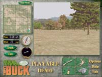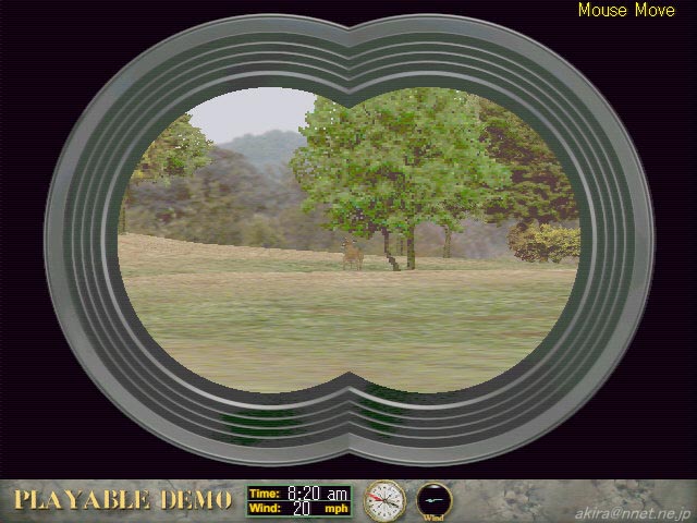 Sierra Sportsによる3Dハンティングシミュレーション。Direct3D対応。 このゲームは、そのハイセンスな紙面のため国内外で有名なアウトドア雑誌「Field & Stream」の最新作で、Deer Hunter 2と同じく鹿狩りシミュレーションである。 このDEMOではQuickHuntのみをプレイする事ができる他、使用できるライフルもRemingtonの.30/06 Bolt Actionのみとなっている。 標準状態でのプレイ画面には、マップやコンパスなどのアイテムが同一画面に配列されており、3Dアクションゲームの様なフルスクリーンではなく640x480の画面の中に、やや小さめの512x256相当のウインドウが有る感じになっている。 この小さな画面では遠くに居る鹿を見極めるのがなかなか難しいが、この状態では鹿レーダー(笑)も同時に見ることが出来るため結構重宝する。 また小さい画面でも、常に移動している鹿は視野内に居れば見つける事は難しくないし、ライフルのスコープやビノキュラー、鹿レーダー(笑)も備わっているため比較的簡単に鹿に近づくことができる。 もっともフルスクリーン状態も選択できるので、必要に応じて使い分けることができる。 描画は何れの画面でも軽かった。 実際の鹿狩りだが、確かに鹿は人間が近づきすぎたり、風向きにより臭いが届いてしまったりすると逃げられるのだが、CarnivoresのDEMOと異なりライフルスコープで狙撃が出来るため、比較的簡単に仕留める事ができる。 もっとも一般的なアクションゲームのようなシューティングの爽快感には乏しいので、実際に鹿狩りを行っているとか鹿狩りに憧れているとかで無ければ、このゲームを楽しむのは難しいだろう。 しかしグラフィックスは自然を良く表現していると思うし、サウンド面でも鳥のさえずる音や自らの足音等環境音が非常にリアルで、その自然な感じに好感が持てる。 ハンティングに興味のない一般の人でも、アウトドアの雰囲気を味わうためだけにでもプレイする価値が有るかもしれない。 |