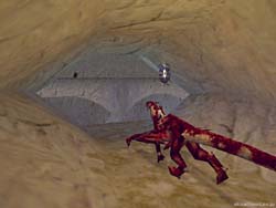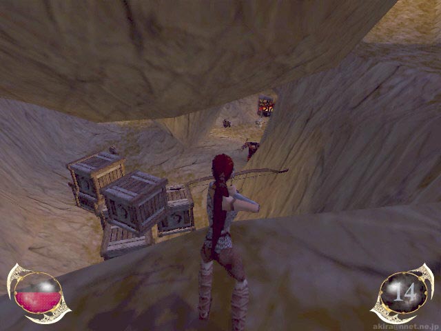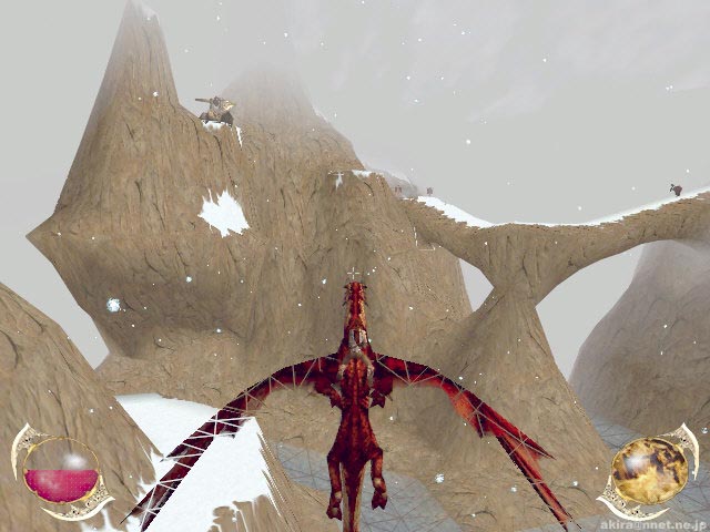 Psygnosisによる3Dファンタジーアクションゲーム。Direct3D/EAX対応。 このゲームは、イケてる近未来サイバーパンク風ゲームを造ることで良く知られているPsygnosisが制作した、ファンタジーRPGアクションアドベンチャー的なゲームだ。 ゲーム概要としては3rdPersonViewアクションゲームのTOMBRAIDERシリーズと、SEGAのパンツァードラグーンを足したようなものになっている(2では割らない)。 プレーヤーの操るRynnは相棒(?)のドラゴンに乗って空を飛ぶことも出来るし、ドラゴンから降りて一人で冒険をする事も可能なのである。 その為に、今までのゲームに無い自由なプレイが可能になっているのだ。 このドラゴンは行動範囲内では何時もRynnの事を援護してくれる頼もしい存在だし、呼べばどこにいても自分の近くに舞い降りてくれる。 もっともその為には、ドラゴンが着地できるスペースも必要になるのだが。 ちなみにこのゲーム、ドラゴンが死んでもRynnが死んでもゲームオーバーなので、対空砲や敵のドラゴンが現れる地点では、自ずとドラゴンに乗り込み戦わなくてはならなくなる(ヒールポーションはドラゴン、Rynnとも共通)。 ドラゴンは強力な無制限ブレス攻撃が行える上に移動が速いので重宝するのだが、マップには人一人しか通れないような洞窟も多数存在するので、その場合にはRynnのみで行動する。 Rynnが装備できるアイテムは、DIABLO等のRPGの様に大きさにより制限がある。 また装備によっては耐久度が設定されており、数度の使用で折れてしまうこともある。 このゲームはアクションがメインなのだが、そのアクション部分も特に不満の無い造りになっている。 相手も自分も防御できるし、側転で素早く横に回り込んだりと言った事も可能だ。 モンスターのAIも優秀で、前述のように防御も掛けてくるし、物音に気づきこちらに近づいてきたりと面白い。 逆にそれを利用して物音でモンスターをおびき出し、その隙にこっそりアイテムを頂いてしまうような事も可能だ(まるでThiefの様だ)。 またグラフィックスもなかなかの物だ。 まずTOMBRAIDERシリーズよりは確実に上を言っていると断言して良いだろう。 流石はPsygnosis。 岩などのテクスチャーも良い質感だし、流れ落ちる滝の表現も良い感じだ。 しかしまだ未完成バージョンだからだろうか、それとも私の環境との相性だろうか。 なぜか所々でワイヤーフレームがちらちら見えてしまい、これが結構気になってしまった。 あまりにもあからさまに見える事も有るので、もしかしたらこれは演出なのか?と思うほどだ(笑)。 (後日談:Savage4ではこの症状は再現されなかった。PURE3D2LXの問題だったようだ) まあワイヤーフレームは置いておくとしても、洞窟の中で松明にライトアップされたRynnなどを見ていると、その美しさには驚くばかりである。 そうそう、今までのゲームでポリゴンの主人公と言えば厳つい顔つきが殆どだったが、このゲームのRynnはなかなかのべっぴんさん(死語)だ(笑)。 もっともAIが優秀だったりグラフィックスが美しかったりするだけでは面白いゲームとは成らないが、このゲームは探索して行く毎に様々な仕掛けが待ち受けており、モンスターを倒すのにもトラップを使用したりと、単調にならないプレイを行うことができるのが優秀なポイントだろう。 このゲーム、かなりヒットする予感を感じさせてくれるものとなっている。 EAXレビュー: EAXを有効にして再プレイしたので、EAXレビューを別に行いたいと思う。 さて、最初はEAXが無効に無効になっている事に気が付かずプレイしていて、洞窟や飛行時の迫力がEAX対応の割には弱いな・・・と不思議に思っていた。 最近EAXが無効になっている事に気が付き、あわててこのゲームを再プレイしたのだが、これが本当に驚いてしまった。 まず洞窟内をRynnが歩くときに、EAXカット時にはもっと反響が有ると良いなと反響音を想像しながらプレイしていたのだが、実際にEAXが有効になった状態で洞窟を歩くと、まさに自分が想像していたような、いやそれ以上にリアルで迫力のある残響音が響いていたのだ。 しかも空間の広さに合わせて残響音も変わる有様だ。 さらに驚いたのはドラゴンで飛行しながら、対空砲や敵ドラゴンと対峙した時の事だ。 左右上下から対空砲の砲火が脇をかすめていく効果音(轟音)が驚くほどリアルだし、空中で乱舞する敵ドラゴンと自ドラゴンの戦いが音響効果によりさらに迫力あるものになっている。 またDEMO最後にくぐるゲートの開閉音も重厚で3D効果も素晴らしい。 思わずゲートが上がる音に振り向いてしまうほどだし、その後に聞こえる洞窟内に響く水滴の音も美しい。 まさにEAX有ると無しでは、まるで別のゲームの様な迫力だったのである。 |