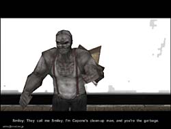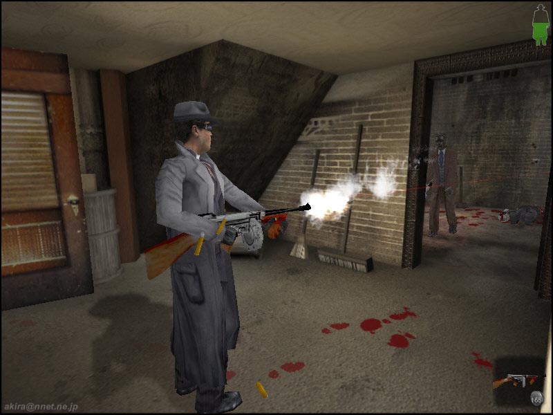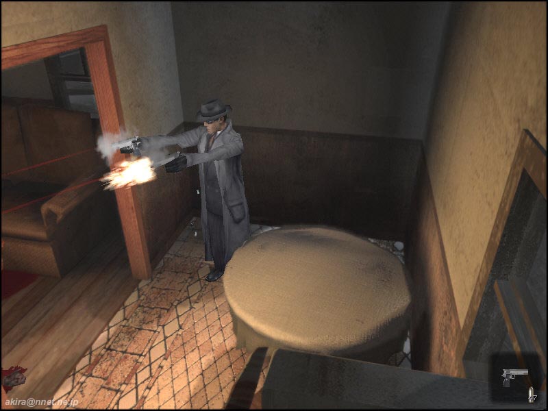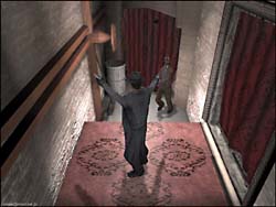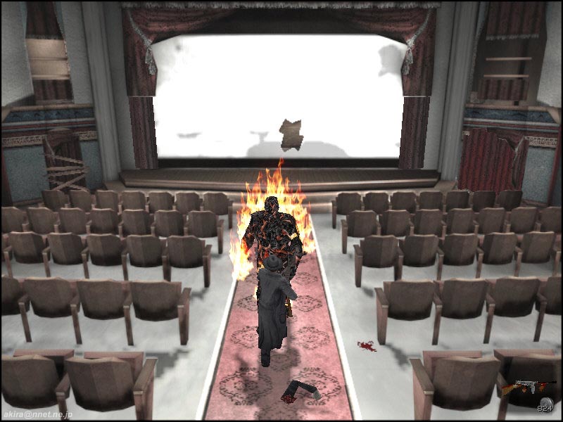 −2nd DEMOレビュー− むちゃくちゃ重いながらも好評だったファーストDEMOがリリースされて一ヶ月ほどで、内容も一新された2ndデモがリリースされました。 前回は109MBという大容量なDEMOでしたが、今回は比較的コンパクトな81MBというサイズで、展開すると147MBのHDD容量を占有するという、やはり大きなDEMOです(笑)。 ファーストDEMOはゾンビ化してしまった村に僅かながらに生き残っている村人を救出するという、どちらかと言えばミッションクリア型のアクションゲーム的要素の高いステージでしたが、今回は古めかしい映画館を舞台とした、どちらかと言えばストーリー重視(謎解き重視)のステージとなっています。 この雰囲気は、懐かしのアローンインザダークを彷彿とさせます。 とは言っても謎解きもそれらのアドベンチャー系洋ゲーよりも難易度は低めで(製品版の他のステージは解りませんが)、比較的に簡単にクリアできるでしょう。 また相変わらずフルボイス、フルモーションのゲームエンジンを用いたビデオが入り、雰囲気を盛り上げてくれます。 ステージ構成が前回のミニチュアっぽい屋外メインの構成から、映画館という建物内部になったという事も有るでしょうか、主人公の格好良いガンアクションや、迫力のあるモンスター、美しいオブジェクト類が印象的なDEMOとなっています。 また前回はショットガンと二挺拳銃のみでしたが、今回は古風なマフィアが使用するようなマシンガン(トミーガン)が使えるようになっています。 しかも弾薬は取り放題なので、前回のDEMOと違いバリバリ撃ちまくり状態になります。 前回のモンスター(ゾンビ)は異様におどろおどろしく、何時までも執拗に追いかけてくるその動きや少ない弾薬、そして恐怖心を煽る効果音と相まって本当に怖かったものですが、前回と雰囲気が少々異なり、今回は一旦当たれば相手に動く隙さえ与えない高速連射のトミーガンのお陰で、モンスター出現と同時に葬りさる事ができ、それ程怖さを感じさせません。 もっとも前回の比較的平面なステージと異なり、今回は狭い上に入り組んでいる映画館が舞台ですので、狭い通路や視界の届かない階上から銃で狙われることが殆どのため、別な意味で(体力が急激に削がれる)怖いかもしれませんね。 それにたまに目の前を過ぎる怪しい陰などの演出は流石ですし、相変わらず格好良くたなびく主人公のコート、それに通過するとリアルに揺れ動く垂れ幕など、目を見張るシーンが多いです。 さてその美しさの為か、グラフィックス、サウンド共に最高に設定すると、800x600でも12fps前後(C450A+TNT2U)という重さになっていた前回のDEMOでしたが、その後DirectX7の登場と、DirectX7対応TNT2Uドライバーのお陰で20〜30fpsにまで動きを改善する事ができました。 今回も当然同じグラフィックスエンジンを使用しているのでしょう。 最初から20〜30fpsの比較的快適な、ゲームプレイに支障のない動きで楽しむことができました。 もっともシーン切り替えを頻繁に行うと、いきなり激しいスワップを起こし、瞬間的なコマ送り状態に見回れることは有ります。 これはもうCPUがどうこういうものでは無く、単純に128MBではメモリーが足りないのでしょう。 ロード時間も、最近のゲームの中ではかなり長い方ですし。 という事で、相変わらずこのゲームの推奨スペックはPentium2〜3、Athlon、メモリーは最小128MB、VGAも各社最高レベルの製品に(G400やRAGE128、TNT2等)32MBのVRAMを要求するという、ハイエンドなスタンスは変わっていないようですね。 しかしPCというものは毎年2倍近いペースでパワーアップしていますし、日本語版も発売される事を考えると、今は多少重いと感じても、このDEMOを気に入った人は製品版も買って間違いは無いのではないでしょうか。 |