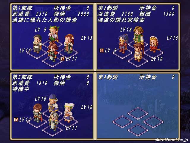 次に編成フェイズで、傭兵のアイテムや装備品、技を変更したり、部隊を編成したりします。
