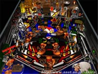Team 17によるピンボールゲーム。 過去から色んなピンボールがリリースされてきたが、それぞれ横長のCRT上で如何に縦長のピンボールの台を再現するかで様々な趣向を凝らしていた。 中には玉の動きに併せて画面が上下にスクロールしたり、玉の視点でゲームできたりとバラエティーに富んだソフトが多かったが、Addiction Pinballはオーソドックスな固定画面方式を採用している。 固定画面だとやはり情報量が過密になるため、LCD画面の非表示や透過度を選択できるようにしたり等の工夫が凝らされている。 DEMOで遊べる台はハマリゲーで有名なWorms2が題材になっており、キャラクターもWorms三昧である(笑)。 元のゲームにはまった人なら、よけい楽しめること請け合いである。 このゲームは音楽もノリが良いし、玉も周囲の電光を反射して転がり非常に綺麗だ。 だからあまり文句はないが注文するとしたら、若干玉を弾いてる感覚が薄く感じられたので、もう少しフリッピング時の重みが感じられると良かった。 解像度は640x480から1024x768まで選択でき、DEMOは800x600固定で4分間の時間制限付きである。 |