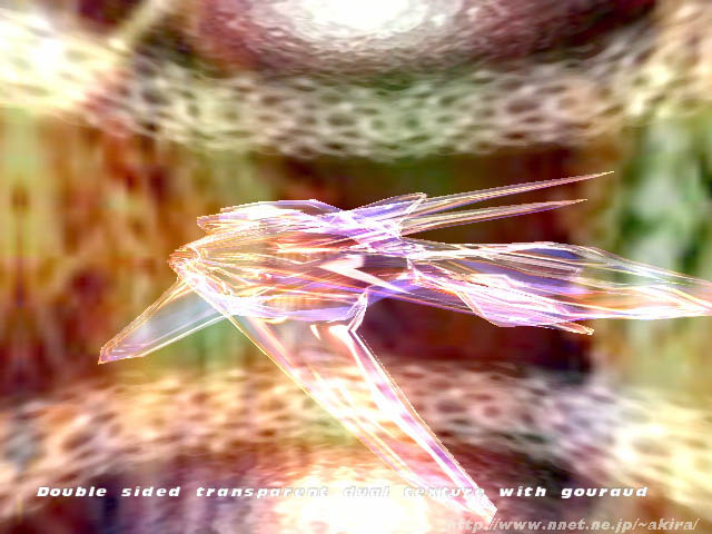 そしてこのFINAL REALITYは、まさにそのMEGA_DEMOを彷彿とさせるソフトだ。実際、製作には有名なMEGA_DEMOアーティストが加わっている。 またFINAL REALITYは、現在数少ないD3Dベンチマークテストプログラムでもあり、AGPのベンチマークも行える貴重なソフトである。 実際に実行すると、D3Dファンクションを多用した美しいグラフィックスとそれにマッチしたクールな音楽に衝撃を受ける。 残念ながら、実行させる3Dボードによって画質も異なってしまう。 |