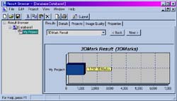 Futuremark Corporationによる、Direct3Dベンチマーク+テクノロジーデモ。 これまでゲーム寄りのDirect3DベンチマークとしてはFINAL REALITYが有名だったが、新しく3DMark 99がその仲間に加わることとなった。 レジストをしないLiteバージョンでも、CPU Geometry Speed、Rasterizer、Game Race FPS、First Person FPS、Fill Rate、Fill Rate With Multi-Texturing、 2MB〜32MB Texture Rendering Speedを計測出来る。 レジストをしたProバージョンだと更に二倍ほど計測項目が増えるようだ。 1600 x 1200もの高解像度でのテストが行えたり、FINAL REALITYより多岐に渡る計測を行える3DMark 99だが、更にFINAL REALITYより優れている点として、使用している3Dカードの3Dグラフィックスクォリティの優劣を、簡単にリファレンスと比較できる点が挙げられる。 この計測はかなりシビアに行っているようで、Riva128等より遙かに高画質な3D RageProでさえ、リファレンス(恐らく3Dfxカード)と比較すると3Dクォリティが劣ることが明らかになる。 ベンチマークとは関係のないDEMOモードも備えており、こちらではBGMも付いて美しい3Dグラフィックスを堪能する事ができる。 しかしDEMOの美しさとクールさでは、さすがにFINAL REALITYに届かない感じだ。 参考までに私の環境で計測した結果を記しておく。