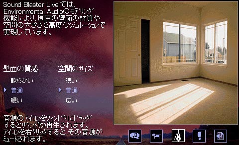 この画面では、Live!周囲の壁面の素材や、空間の大きさをリアルにモデリングしている様子を体験する事ができます。