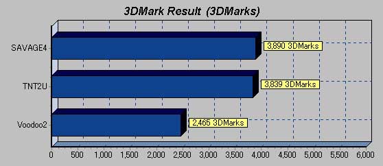 SAVAGE4とTNT2Ultraでは予想に反し、SAVAGE4の方が若干結果が良かった。