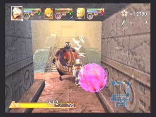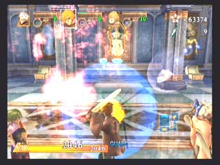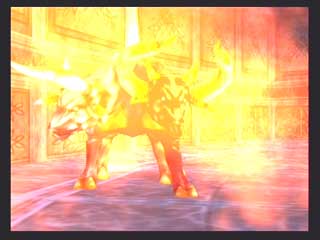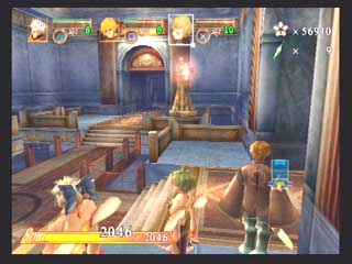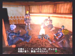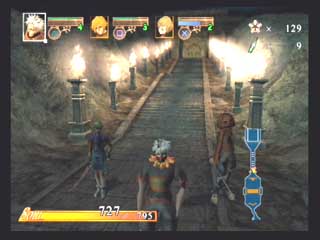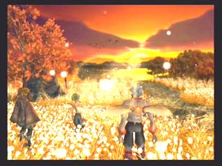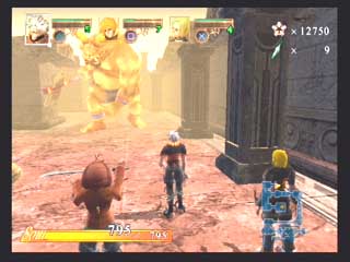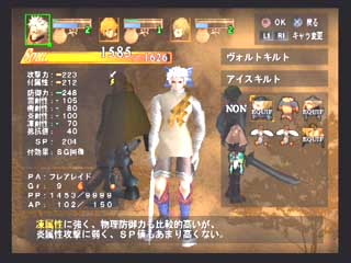 FromSoft − エヴァーグレイスII − 〜1st〜 フロムソフトウエアから発売の3DアクションRPG、エヴァーグレイスIIが発売された。 オリジナリティの有る世界観と、菅原健氏の独特な雰囲気のイラストが印象的な作品だ。 CGムービーの後直ぐにゲームエンジンでストーリーが展開するが、3D品質としてはPS2ソフトの中では中の上と言った感じでそれ程綺麗な感じではない。 それより気になったのは、せっかく気に入っていた菅原健氏のイメージイラストと実際のキャラのモデリングが違うぅ〜(T-T フィルナとかソカとかの女性キャラはイラストよりまとも(笑)になっているので良いのだが、ユテラルドとかリヤナが(T-T 全然違うぞ〜(笑) まあそれはさておき、ゲームは小マップで区切られたステージの中を斜め上方(バードビューに近い)視点でプレイする事になる。 しかし視点は随時キャラクタの正面に移動でき、視点距離も変えられるのでまあまあと言った感じ。 このゲームのオリジナルポイントは、三人がパーティーを組んで移動していると言うこと、プレーヤーは三人のうち一人を常に操っていて、他の二人は勝手に付いてきて勝手に攻撃したりする。 また攻撃方法も通常方式の他に、パルミラアクション(PA)と言われる特殊技を使えるのがポイントで、しかもこれは単体で使うより連携させて使うことに意味があるのだ。 例えばユテラルドでPAを発動し、まだ敵にPA効果が残っている間にリヤナのPA、フィルナのPAとヒットさせて行く。 こうすると普通は攻撃力が高くなるとかの効果があるのだが、このゲームの場合コンボを繋げることによりアイテム強化などに使うパルミラ片を入手できるようになるのだ。 発動するPAの種類は装備に依存し、またキャラクタ能力まで装備(アクセサリや服)で上下するというのがこのゲームの特徴だ。 普通RPGでは経験値が貯まるとキャラクタ能力が上がるのだが、このゲーム では装備の能力が上がるというシステムになっている。 まだホンの触りしかプレイしていないが、移動がまだ慣れて無いため少々引 っかかったり気味だったり、屋内では視点が固定されるので見通しが悪いとか セーブ時間がやや長いなど気になる所もすでに有るが、独特なシステムを沢山 取り入れ、気合いの感じる世界観を閉じこめたこのゲームをプレイする事をこれ から楽しみにしている。 〜2nd〜 大体ゲーム中盤を過ぎた所までプレイしたと思うが(雑誌情報から)これまでの段階で感じたことを書きたいと思う。 自分はコンシューマのRPGはあまりプレイ経験が無く、しかも3Dものというと洋ゲーFPS的RPGが主体だったのだが、このゲームは2D時代のRPGとはまったく異なるものであると言えるだろう。 RPGといって思い浮かぶのは、街や村に入って住民達から情報を貰い、装備を調えたりして次のクエストに向かったり、次から次へとモンスターを倒して経験値を上げるのがRPGだと思っていたが、前項でもあげているとおり、このゲームには村人達との会話とか主人公の経験値アップという要素は無い。 ストーリーの区切り毎に3〜4つ程度のステージが有り、ステージをクリアしてストーリーが進行するとキャンプイベントに入り、キャラクター同士が話をする感じで今までのストーリーが整理されたり、新たなクエストが生まれたりする。 主人公達のパワーアップも敵を倒すことによって経験値を得る方法ではなく、宝箱やショップで購入して得た装備(兜、鎧、具足、アクセサリー、武器)を新たに身につけることにより行われる。 またこれらの装備はパルミラ片と呼ばれる物質により各要素(攻撃力、耐属性)を強化する事ができる(店長に強化してもらう)。 パルミラ片は宝箱で入手できるし、またパルミラアクションを連鎖(コンボ)攻撃させる事により発生させる事ができる。 連鎖自体は単体攻撃と効果は変わらないと思うが、このパルミラ片を出すためだけに連鎖を行っているようなものだろう(笑)。 このゲームの特徴となる装備も多種多様で、リアル系の鎧などからネコミミ、熊の被りものなどの受け狙い系まで揃っている。 それぞれ各属性の耐性も有り、熊だと樹属性に強かったり(森の住人だから)、パラソルだと凍属性だったり(雨は冷たいから)する。 頭に水色のリボンを付けて露出度の高いコスチュームを付けたユテラルドなんか見たくもないのだが(笑)、こういう装備をするワケは店長からセンス評価をしてもらうタメなのだ。 店長にコーディネートを見せると、「うーん、いまいちネー」とか「なかなかイケてるヨ」などと評価してもらえ、良い評価を貰えると店頭の商品を割り引きしてもらえるのだ(最大25%引き)。 またショップではセーブやパルミラアクションの練習、アリーナ出場、装備強化なども行える。 実際のゲームプレイは、各ステージを入り口から出口まで行けば良いのだが、これも神殿や洞窟などの閉鎖空間から草原や山道、廃墟などの屋外まであり、それぞれに頭を使わなければ先に進めない仕掛け