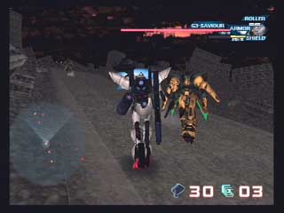 − G−SAVIOUR − PS2登場初期に発売されたロボットアクションゲーム。 G-SAVIOUR(以下GS)は一応ガンダムシリーズなのだが、ガンダムファンからすれば関係のない話である(笑)。 一応サンライズが絡んでは居るが、キャラクターやストーリーなど海外色が強く、TVで本編も見たが自分は今一好きになれない作品だった(外人の俳優さんがダメダメ)。 で、このゲームには本編のダイジェストが三本も収録されているので(しかもDVD画質)、TVを見逃した!という人は見てみるのも良いと思う。 と言っても三本とも同じ内容なのだが・・・ まずゲームをスタートさせて思ったのは音楽がサンライズ英雄譚Rと同じだと言うこと。 恐らく制作が同じ所なのだろう。 関連して配属されている空母(強襲艦)のデザインも、英雄譚Rのクラウドシップ(笑)。 本当はGSの方が最初なので英雄譚Rが似ていると思うべきなのだろうが、何分英雄譚Rを先にプレイしていたもので違和感倍増という感じである(^^; 実際のプレイだが、まず操作感が今までプレイしたアクションゲームのどれとも似てないのでとまどった。 十字キーは全く使わないし、ホバー使用時と通常歩行時では横移動の方法が異なるのが困る。 また無くては個人的に困る(笑)ロックオン対象を中心にした機動も無いし、上昇(ジャンプ)という空間移動の概念もない。さらに致命的な事に平行移動がまともに出来ない! 平行移動するにはデフォルトではスティックを横に倒しながらL2を押すのだが、微妙なタイミングでただのターンになってしまう事が多く、しかも成功してもややターン方向にずれながらの移動になるので、完全な平行移動をする事は不可能なのである。 結局慣れるまではホバーを使用して敵弾回避をするしか無い。 さらにレーダー範囲の狭さとロックオン距離の短さ。 敵機はかなり前からこちらを捉えているというのに、自機はかなり近づかないとレーダーに相手を表示しないし、当然ロックオンすらしない。 高度差が有る場合、目標に手動で標準を合わせるのはかなり難しく(出来ることはできるがアバウト)、結局接近被弾覚悟で近づくしかない。 またどのステージも直線的なレイアウトでただ全長が長く、敵の配置も単調な上に、いつも最後にはボスが控えているというのも頂けない。 ステージ数が8つと少ないのもボリューム不足である。 またダイナミックな視点移動(VAS)も売りなのだが、プレイ中自機ばかり眺めている訳にはいかないので、自己満足を満たす以外役にはたたない。 プレイ中の視点も、何れも自機がじゃまであまり良いものはない。 キャラクターも今一で、特にキャップのベンが頂けない・・・ かなり“アウッチ”な感じである。 なんかアメリカのB級TVドラマ風シナリオも・・・ 悪い点ばかり上げてしまったが、良い点は英雄譚Rを彷彿とさせるBGM。これは気に入った。 後はグラフィックスもぎりぎり及第点。 全体的に難易度が低いことか。 シールドが何度も使えるのも良いと思う。 うーん・・・しかしあまり良い点が多くないな。ていうか悪い点が多いのが事実か(笑)。 アクションゲームとしてまともじゃないのはやはりダメだ。 特にガンダムを名乗っておきながらサーベル戦に意味がないのが痛い。 最後のボス戦も難易度めちゃくちゃ。 はっきり言って絶句します。滅茶苦茶です。 これ作った人の腕を疑います。 実は買う前から評判は知っていたのだが、やはりガンダムゲーはプレイせねばという事で買ったのでありました(爆)。 やはり自分でプレイしてこそクソゲーの評価も下せますからね(笑)。 |
